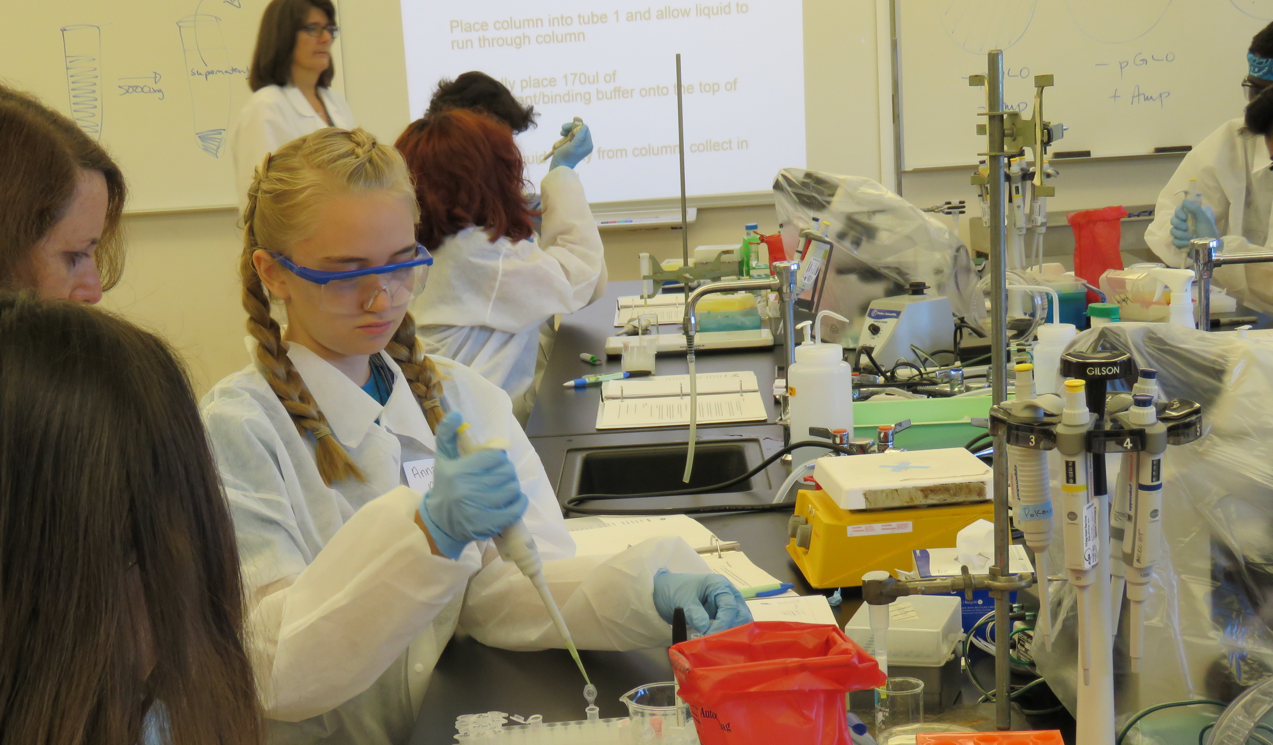 Protein is Cash Workshops are week-long, hands-on workshops for high school teachers. Teachers will learn about and conduct a series of laboratory experiments related to biotechnology and biomanufacturing. The lecture and laboratory material is suitable for the high school science curriculum and will provide teachers with the tools to bring biotechnology and biomanufacturing to their own classrooms.